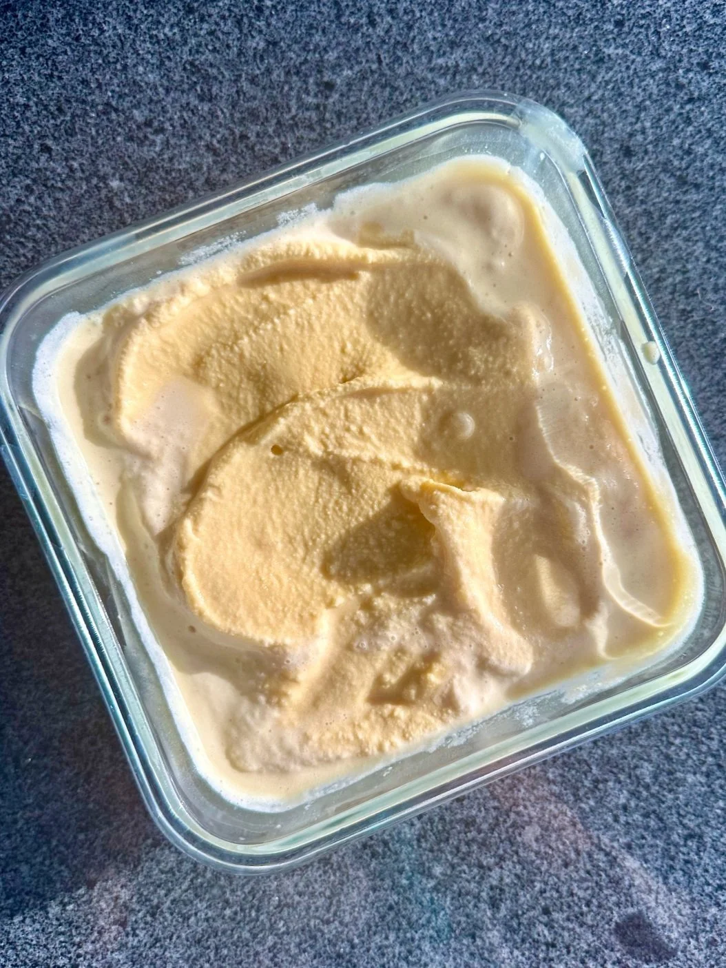 Take the ice cream out of the freezer, scoop into a mug or bowl, and enjoy! If you want toppings, it’s especially delicious with olive oil and Maldon salt.